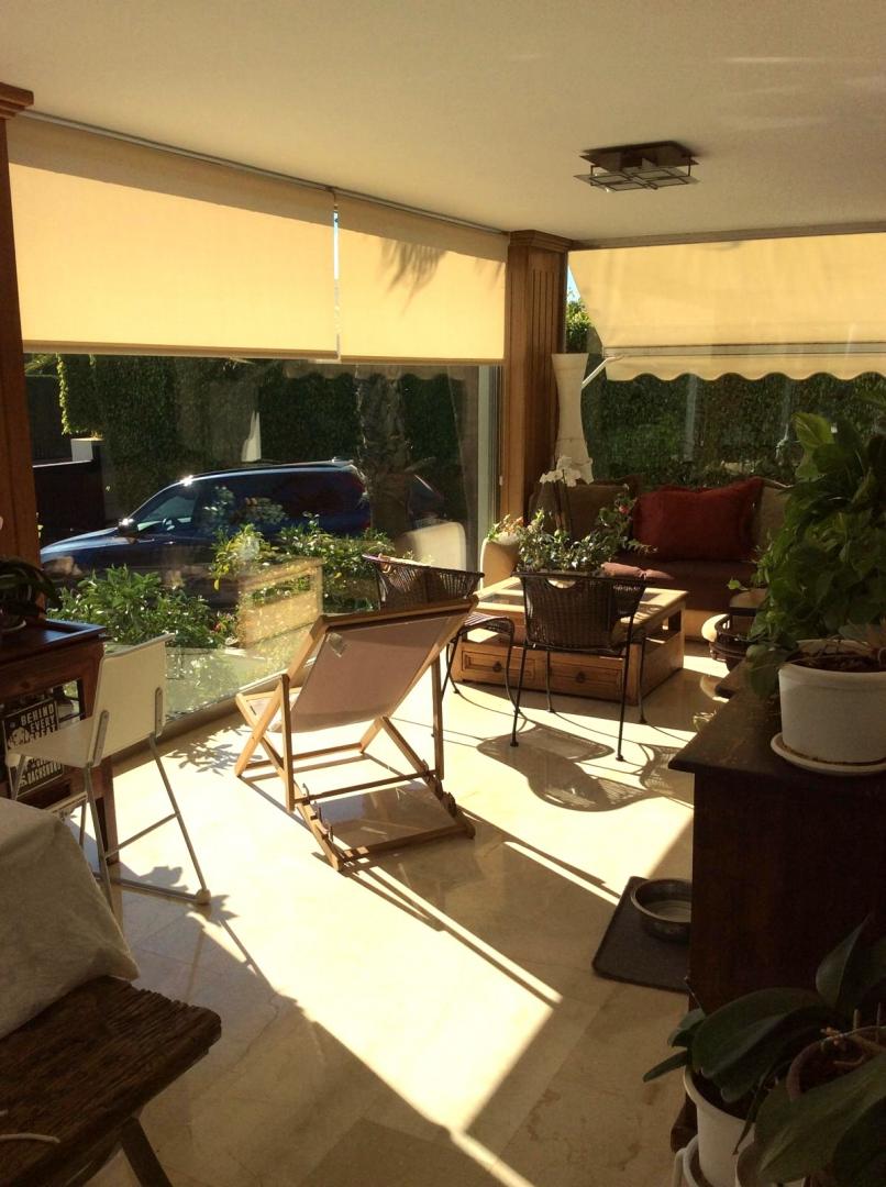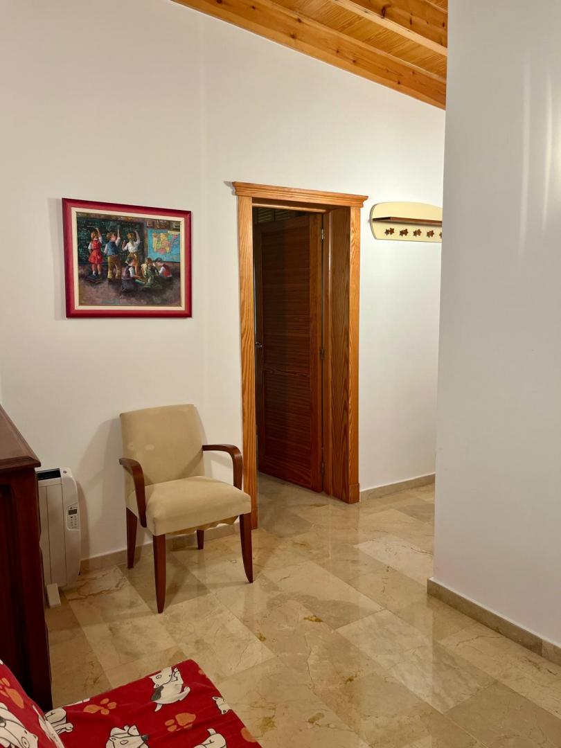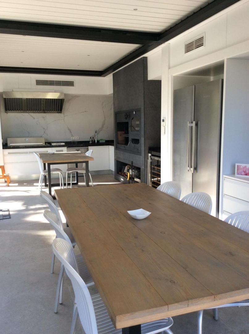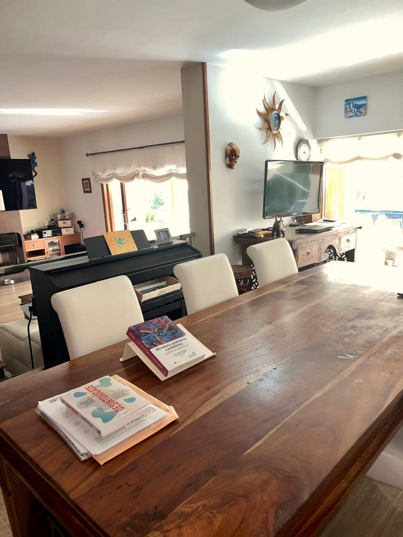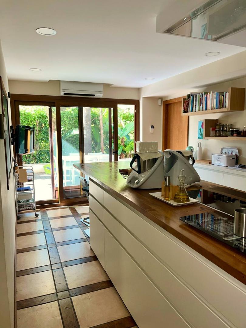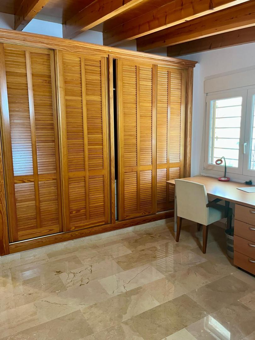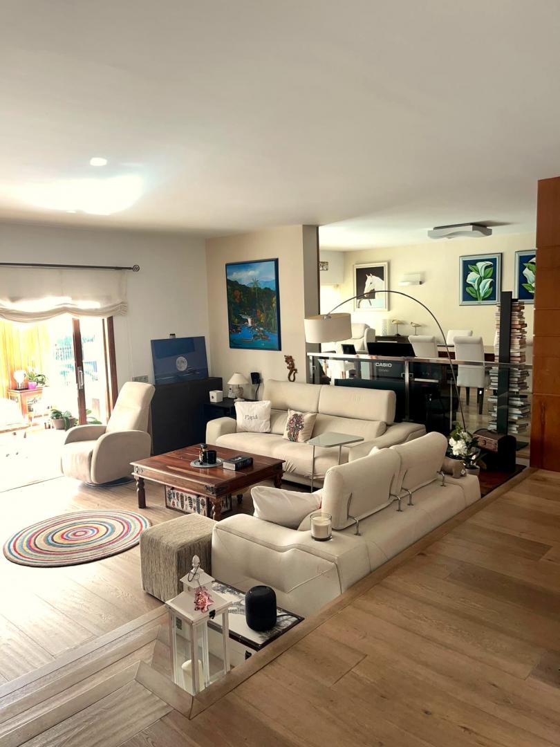 Magnifica vivienda con todos los detalles. 6 dormitorios y 4 baños. Acabados impecables de alto standing, Planta baja con los tres dormitorios principales, 3 baños, cocina y salón. Terraza acristalada. Planta alta con zona de trabajo y 2 dormitorios, con un baño. Totalmente climatizado con energía solar. Suelos de mármol y de madera finlandesa, según las zonas. Barbacoa exterior con los mejores equipamientos, con techo bioclimático y totalmente cerrada con acristalamiento retráctil. Aseo exterior de servicio para la barbacoa. Piscina y jardines impecables. Zona de aparcamiento con estación de carga para vehículos eléctricos.