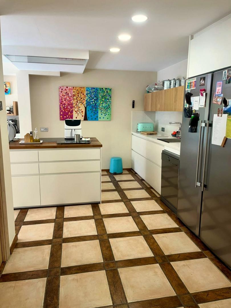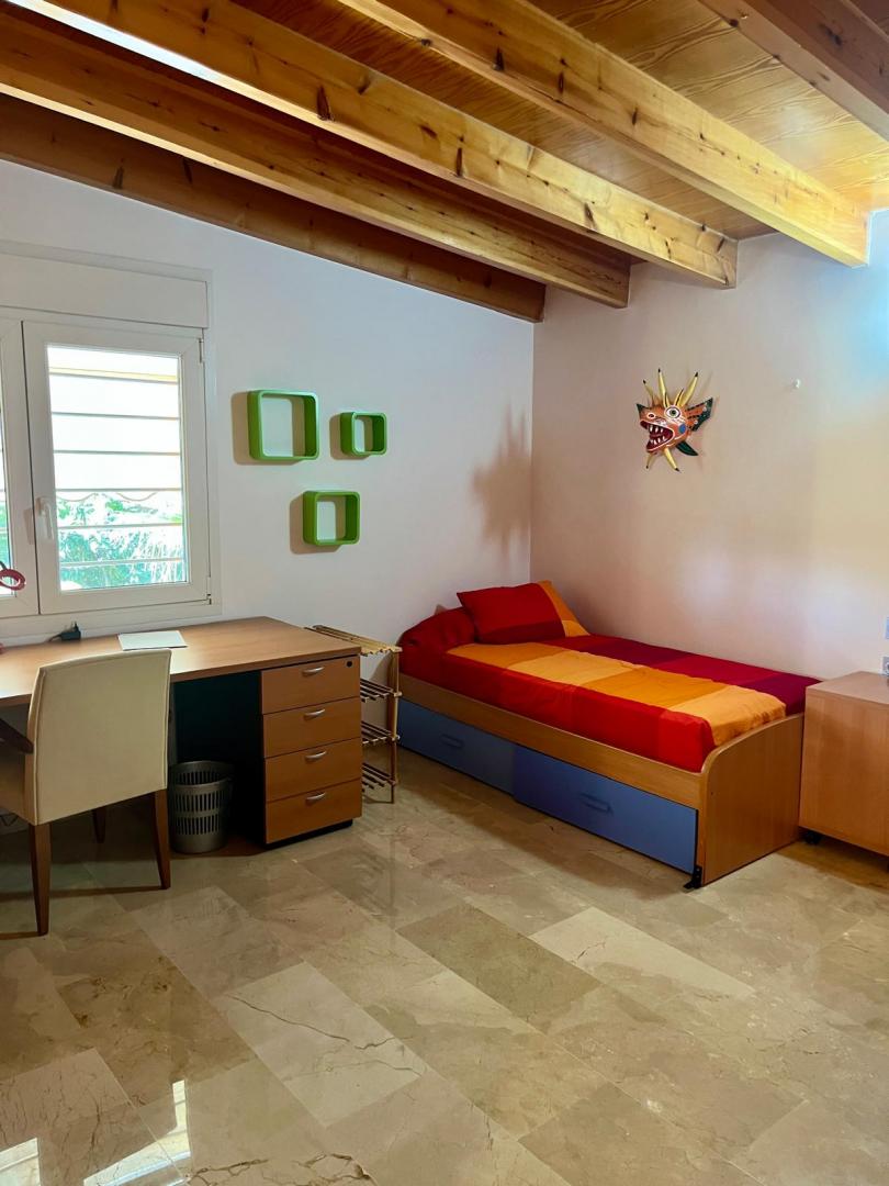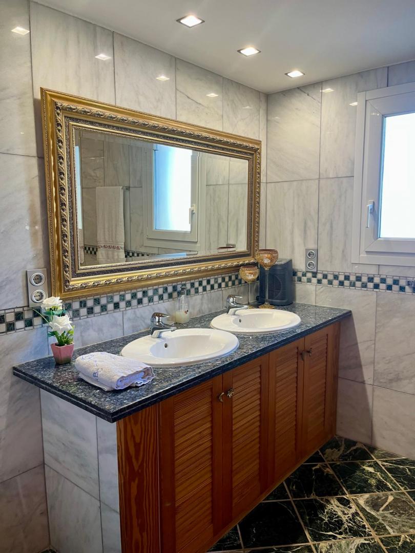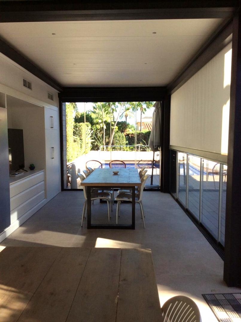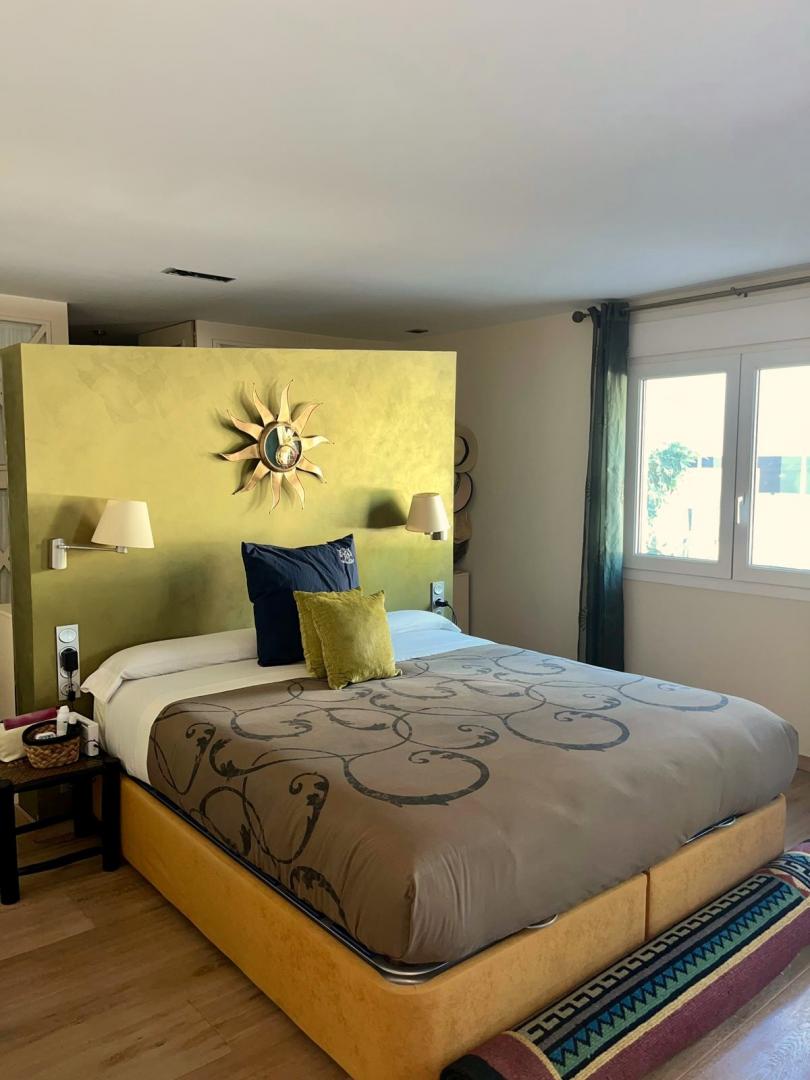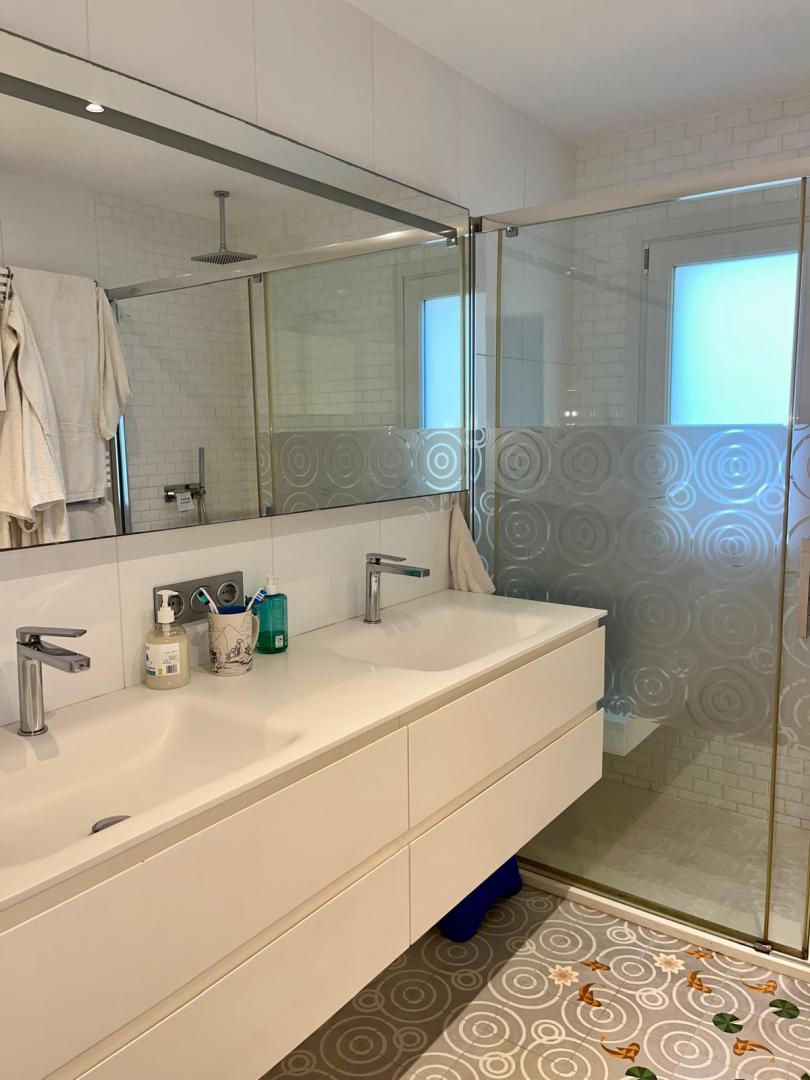 Magnifica vivienda con todos los detalles. 6 dormitorios y 4 baños. Acabados impecables de alto standing, Planta baja con los tres dormitorios principales, 3 baños, cocina y salón. Terraza acristalada. Planta alta con zona de trabajo y 2 dormitorios, con un baño. Totalmente climatizado con energía solar. Suelos de mármol y de madera finlandesa, según las zonas. Barbacoa exterior con los mejores equipamientos, con techo bioclimático y totalmente cerrada con acristalamiento retráctil. Aseo exterior de servicio para la barbacoa. Piscina y jardines impecables. Zona de aparcamiento con estación de carga para vehículos eléctricos.