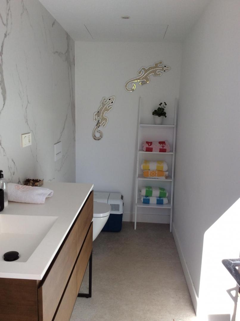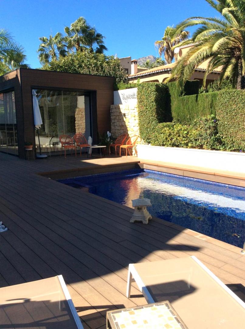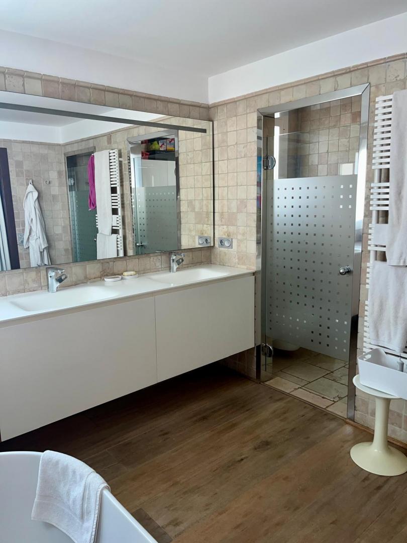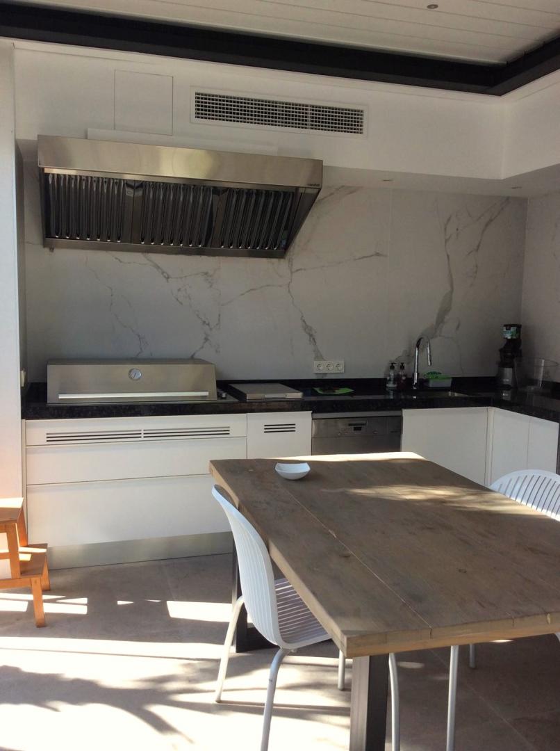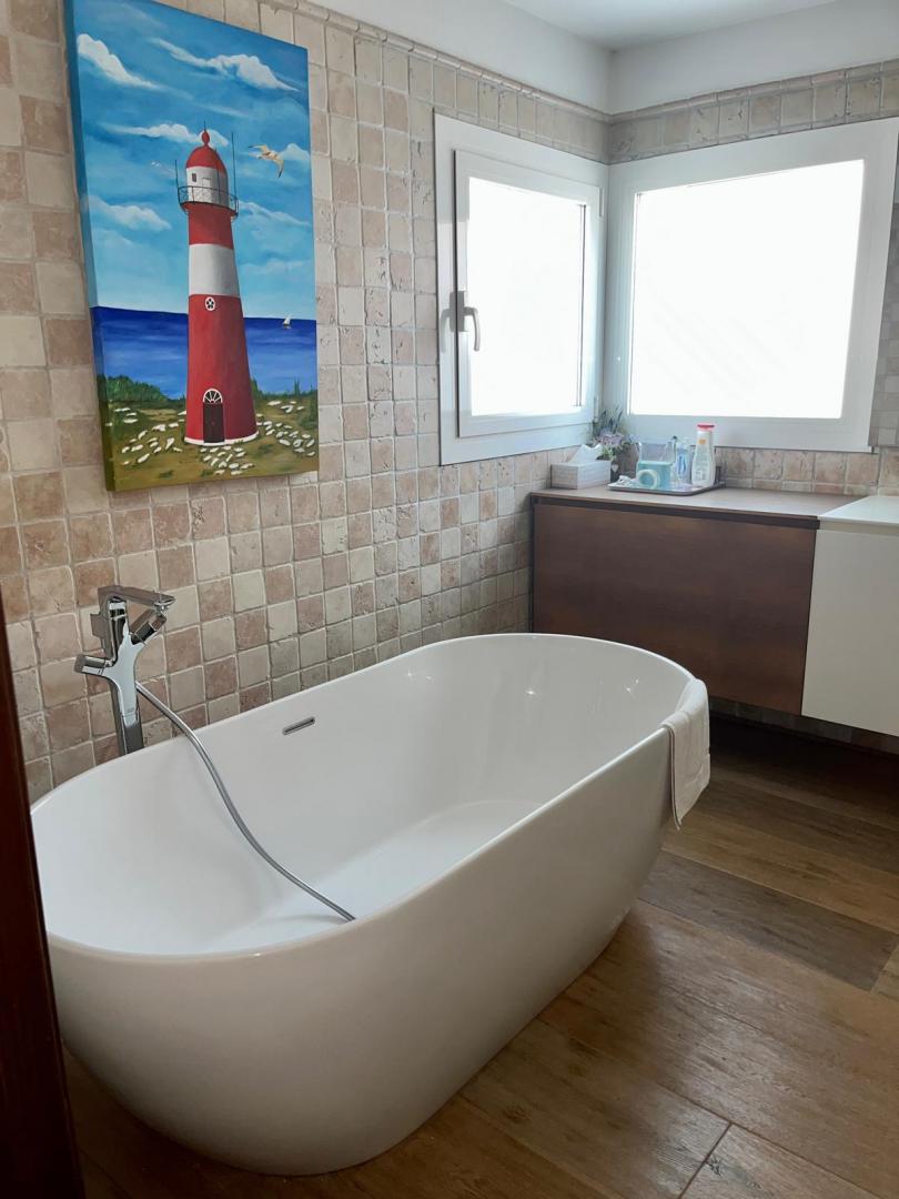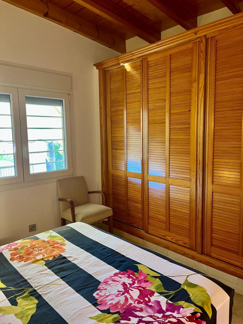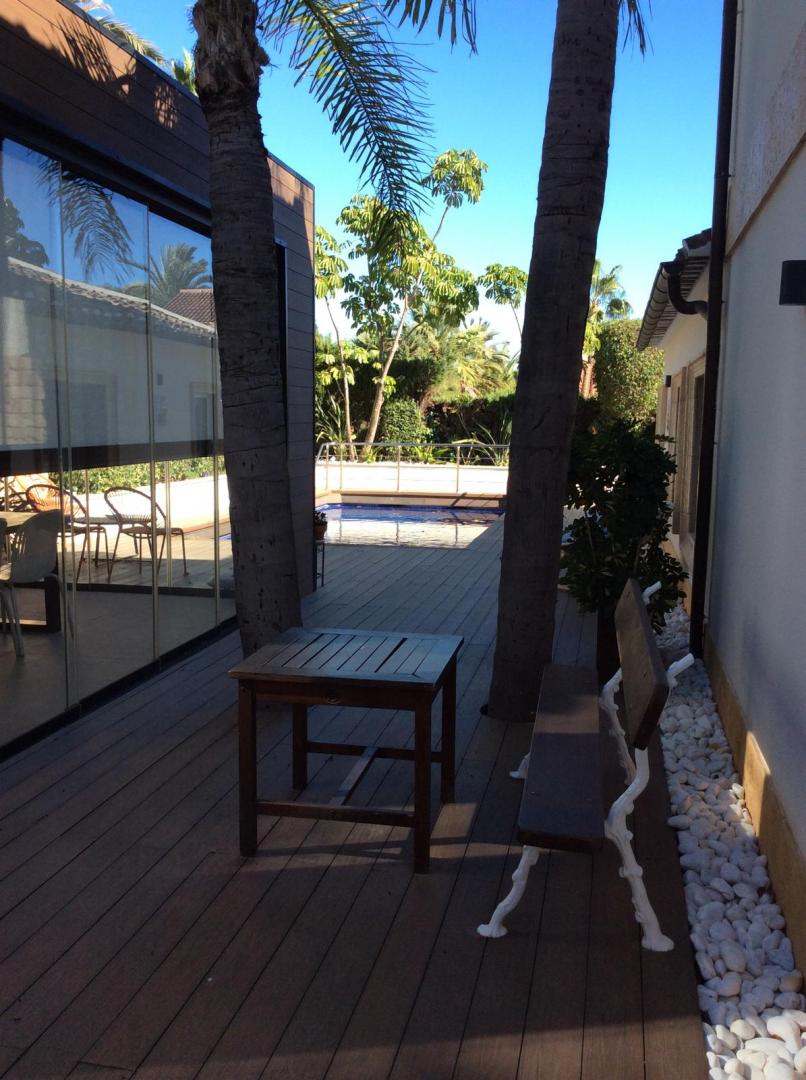 Magnifica vivienda con todos los detalles. 6 dormitorios y 4 baños. Acabados impecables de alto standing, Planta baja con los tres dormitorios principales, 3 baños, cocina y salón. Terraza acristalada. Planta alta con zona de trabajo y 2 dormitorios, con un baño. Totalmente climatizado con energía solar. Suelos de mármol y de madera finlandesa, según las zonas. Barbacoa exterior con los mejores equipamientos, con techo bioclimático y totalmente cerrada con acristalamiento retráctil. Aseo exterior de servicio para la barbacoa. Piscina y jardines impecables. Zona de aparcamiento con estación de carga para vehículos eléctricos.