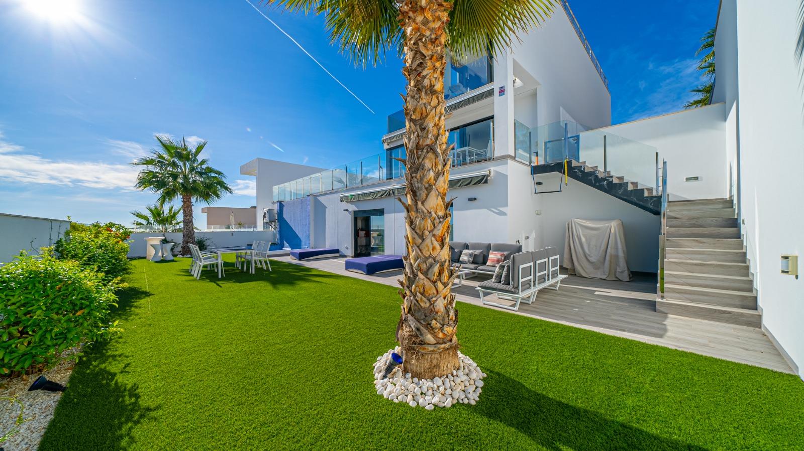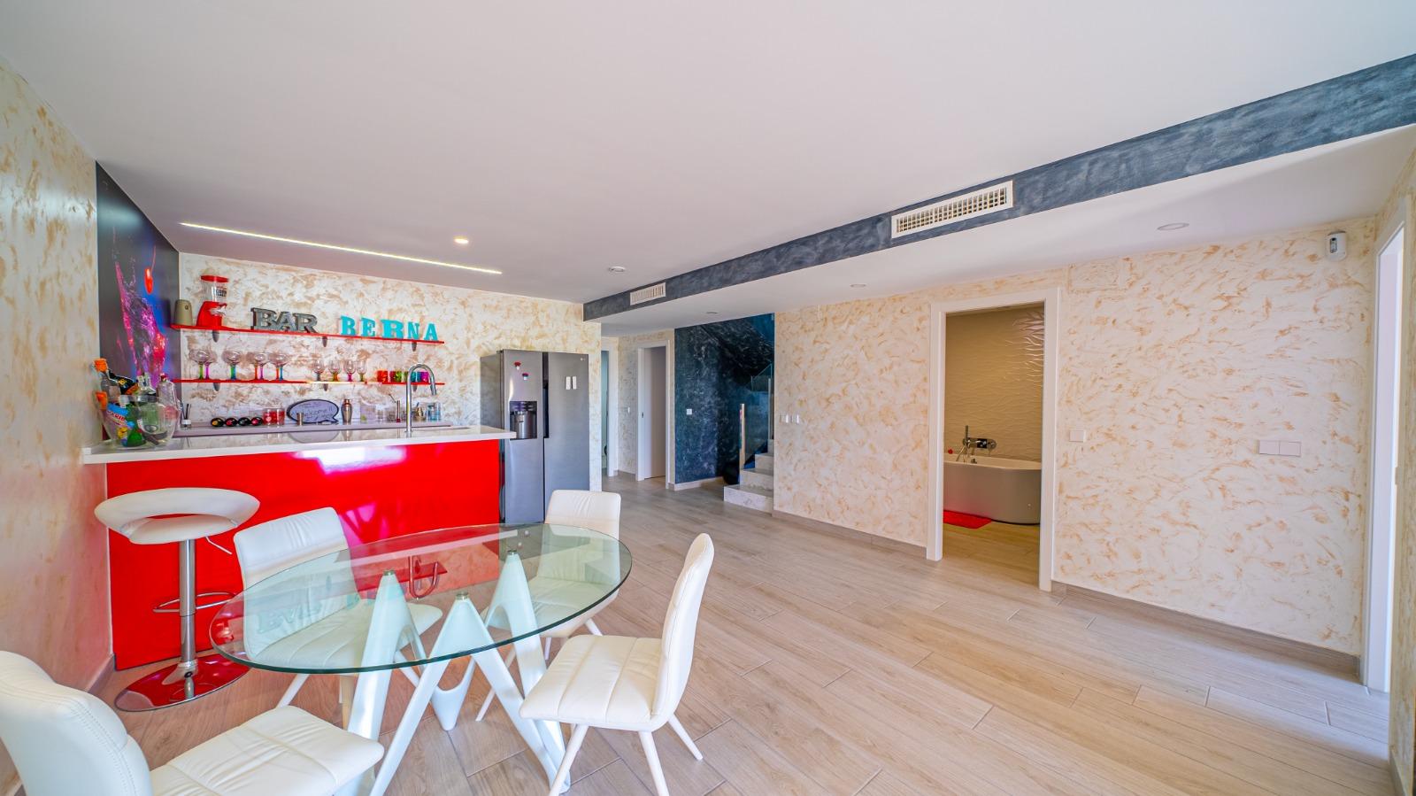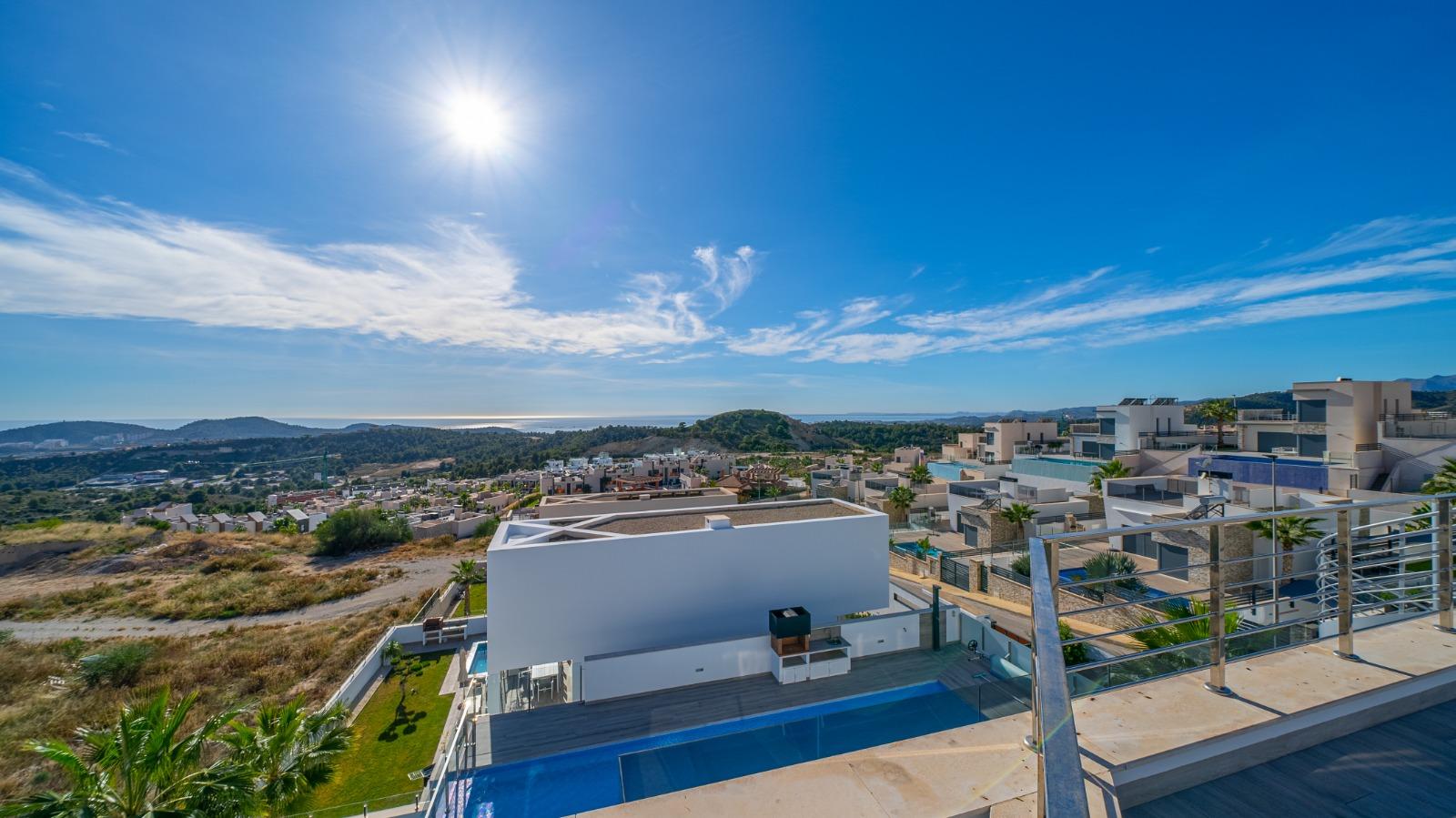 Descubre el lujo y la exclusividad en este impresionante chalet independiente, ubicado en una de las zonas más prestigiosas. Con un diseño moderno y acabados de alta calidad, esta propiedad ofrece 650 m construidos y 570 m útiles, distribuidos en 4 amplios dormitorios y 4 baños. Los suelos de mármol y cerámicos de alto standing aportan elegancia a cada rincón, mientras que los cerramientos con doble acristalamiento aseguran confort y eficiencia energética. La cocina, moderna y totalmente equipada, es un sueño para cualquier amante de la gastronomía. Relájate en tu propia piscina privada o disfruta del sol en el solarium, todo mientras contemplas las vistas panorámicas que te dejarán sin aliento. La parcela de 800 m incluye una plaza de garaje, y la orientación sur garantiza luz natural durante todo el día. Con calefacción central y aire acondicionado por conductos, el confort está asegurado durante todo el año. Además, cuenta con una calificación energética B, tanto en consumo de energía como en emisiones de CO2, lo que refleja su compromiso con la sostenibilidad. No pierdas la oportunidad de vivir en este oasis de lujo y comodidad.
